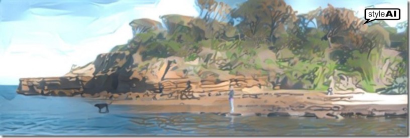 The images below are my own painting (for a recent Wednesday Wanderers) on the left hand side and the Style Tranfser generated by reprocessing the original photo using the style taken from my painting on the right hand side. I'm using the style transfer at Nightcafe Studio here.