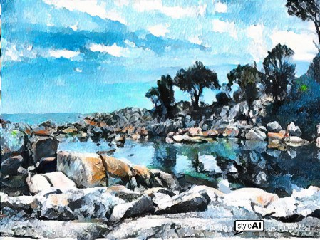A key moment that convinced me there was some creativge millage in using my own artwork to train an AI to "understand" my style was an image I created of Table Rock in Beaumaris back in june 2017, using Google Deep Dream. This is also shown in my hand drawn photos project.